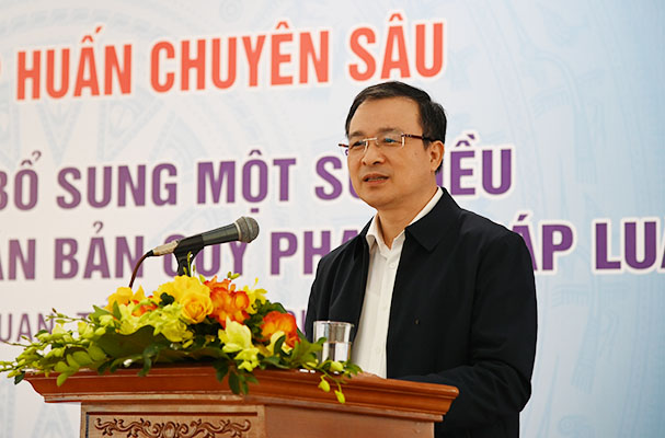 Để Hội nghị tập huấn đạt hiệu quả cao nhất, Thứ trưởng đề nghị các đại biểu tham dự cần thực hiện đầy đủ, nghiêm túc các quy định của Ban Chỉ đạo Trung ương và Thành phố Hà Nội về phòng, chống dịch Covid -19. Đồng thời, đề nghị các đại biểu chấp hành nghiêm kỷ luật Hội nghị; tập trung thảo luận, trao đổi thẳng thắn những khó khăn, vướng mắc trong công tác chuyên môn của Bộ, ngành, đặc biệt là trao đổi các nội dung liên quan đến kỹ năng chuyên sâu về xây dựng chính sách, lập hồ sơ, đề nghị xây dựng VBQPPL, kỹ năng soạn thảo và các kỹ năng rà soát, hệ thống hóa, pháp điển VBQPPL…