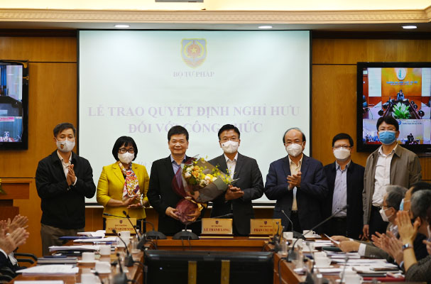 Chiều ngày 08/12, tại Hội nghị giao ban trực tuyến Thủ trưởng các đơn vị thuộc Bộ, đồng chí Lê Thành Long, Bộ trưởng Bộ Tư pháp đã trao Quyết định nghỉ hưu cho đồng chí Đặng Vũ Huân, nguyên Tổng Biên tập Tạp chí Dân chủ và Pháp luật được nghỉ hưu theo chế độ bảo hiểm xã hội từ ngày 01 tháng 12 năm 2021. Tham dự buổi Lễ còn có các Thứ trưởng: Phan Chí Hiếu, Nguyễn Khánh Ngọc, Đặng Hoàng Oanh, Mai Lương Khôi, Nguyễn Thanh Tịnh và toàn thể Lãnh đạo các đơn vị thuộc Bộ.