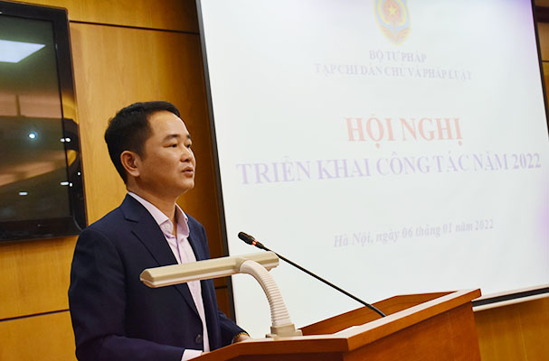 Báo cáo tại Hội nghị, đồng chí Vũ Hoài Nam cho biết, năm 2021, trước tình hình dịch bệnh Covid – 19 diễn biến phức tạp, Tạp chí Dân chủ và Pháp luật đã chủ động đổi mới toàn diện trong phương thức hoạt động, đẩy mạnh ứng dụng công nghệ thông tin, đặc biệt là đổi mới cách thức tổ chức nội dung các ấn phẩm, tổ chức xuất bản và phát hành ấn phẩm, góp phần hoàn thành xuất sắc các nhiệm vụ đã đề ra trong Kế hoạch công tác năm.