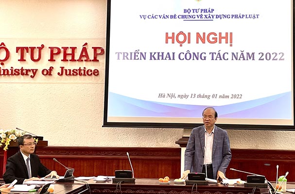 Sáng ngày 13/1, Vụ Các vấn đề chung về xây dựng pháp luật (Vụ CVĐCXDPL) đã tổ chức Hội nghị triển khai công tác năm 2022. Thứ trưởng Bộ Tư pháp Phan Chí Hiếu và Vụ trưởng Vụ Các vấn đề chung về xây dựng pháp luật Nguyễn Hồng Tuyến đồng chủ trì Hội nghị. Tham dự Hội nghị, có đại diện của Vụ Pháp luật Văn phòng Chính phủ, Vụ Pháp chế các Bộ: Tài chính, Quốc phòng, Lao động - Thương binh và Xã hội, Sở Tư pháp Hà Nội, đại diện một số đơn vị thuộc Bộ và toàn thể công chức của Vụ CVĐCXDPL.