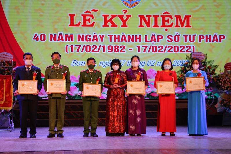 Nhân dịp này, Bộ Tư pháp tặng Cờ thi đua, Kỷ niệm Chương “Vì sự nghiệp tư pháp ” cho 21 cá nhân. UBND tỉnh tặng Bức trướng cho Sở Tư pháp và Bằng Khen cho 9 cá nhân có nhiều thành tích đóng xây dựng và phát triển ngành tư pháp.