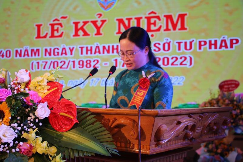 Phát biểu tại buổi lễ, Thứ trưởng Bộ Tư pháp Đặng Hoàng Oanh biểu dương, ghi nhận những thành tích mà tập thể cán bộ, công chức, viên chức Sở Tư pháp đạt được trong những năm qua.