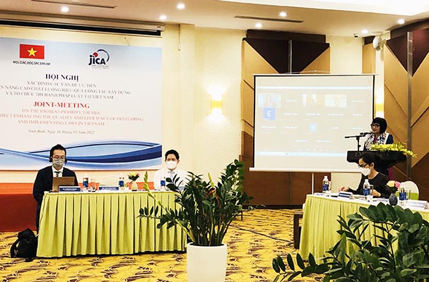 Thực hiện Kế hoạch của Dự án hỗ trợ kỹ thuật “Nâng cao chất lượng, hiệu quả công tác xây dựng và tổ chức thi hành pháp luật (THPL) tại Việt Nam” giai đoạn 2021-2025 do JICA Nhật Bản tài trợ, cơ quan chủ quản là Bộ Tư pháp, cơ quan tham gia gồm Ban Nội chính TW, Văn phòng Chính phủ, Tòa án nhân dân tối cao, Viện Kiểm sát nhân dân tối cao và Liên đoàn Luật sư Việt Nam; vào ngày 18/3, tại Ninh Bình, Bộ Tư pháp đã phối hợp với JICA tổ chức Hội nghị xác định các vấn đề ưu tiên cần giải quyết trong giai đoạn II của Dự án.