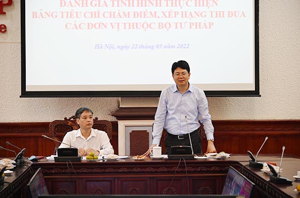 Ngày 22/03, Thứ trưởng Bộ Tư pháp Nguyễn Thanh Tịnh đã chủ trì Hội nghị đánh giá tình hình thực hiện Bảng Tiêu chí chấm điểm, xếp hạng thi đua của Bộ, ngành Tư pháp. Hội nghị diễn ra dưới hình thức kết hợp trực tiếp và trực tuyến trong 01 ngày. Điểm cầu chính tại trụ sở Bộ Tư pháp và các điểm cầu tại các cơ sở đào tạo luật thuộc Bộ, các Sở Tư pháp trên cả nước.