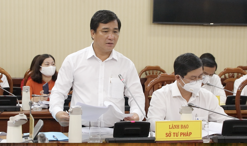 Giám đốc sở Tư pháp Dương Minh Tuấn báo cáo tại buổi làm việc