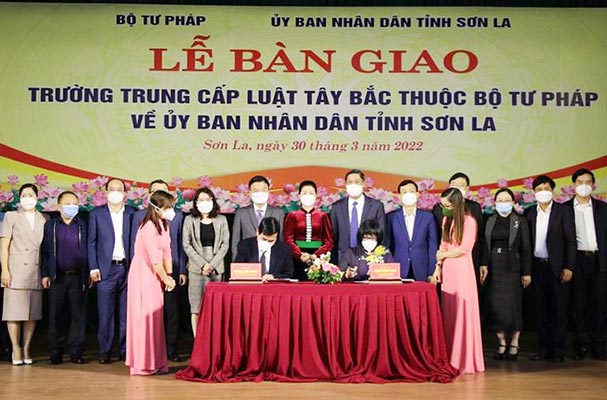 Ngày 30/3, đồng chí Lê Thành Long, Ủy viên Ban Chấp hành Trung ương Đảng, Bộ trưởng Bộ Tư pháp, đồng chí Đặng Hoàng Oanh, Thứ trưởng Bộ Tư pháp, cùng lãnh đạo một số bộ, ngành Trung ương đã dự Lễ bàn giao Trường Trung cấp Luật Tây Bắc về UBND tỉnh Sơn La quản lý.