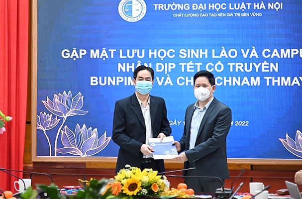 Nhân dịp Tết truyền thống Bunpimay của Lào và Chol Chnam Thmay của Campuchia 2022, sáng ngày 13/4/2022, đoàn cán bộ của Bộ Tư pháp do ông Nguyễn Hữu Huyên, Vụ trưởng Vụ Hợp tác quốc tế làm trưởng đoàn, thành viên là đại diện Vụ Hợp tác quốc tế, Văn phòng Bộ, Cục Công nghệ thông tin, đã tới thăm, chúc Tết và tặng quà cho các em sinh viên Lào và Campuchia đang học tập tại trường Đại học Luật Hà Nội.
