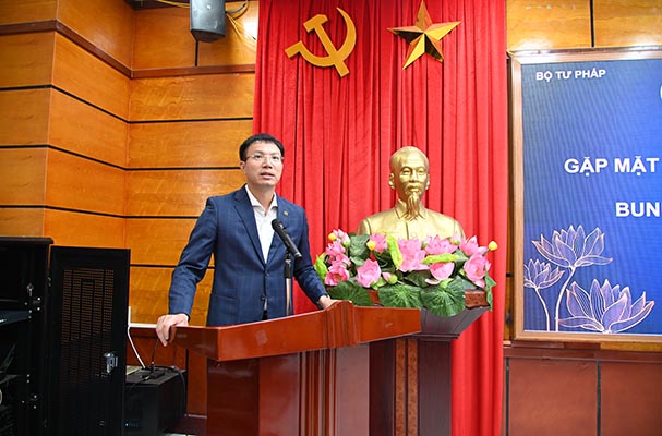 Trong bài phát biểu của mình, được sự ủy quyền của Lãnh đạo Bộ Tư pháp, ông Nguyễn Hữu Huyên đã gửi lời chúc mừng năm mới và những tình cảm chân thành, tốt đẹp tới các em sinh viên Lào và Campuchia đang học tập tại trường Đại học Luật Hà Nội. Ông cũng đánh giá cao và nhấn mạnh vai trò quan trọng của các em sinh viên trong việc làm cầu nối để thúc đẩy và tăng cường hơn nữa quan hệ hợp tác láng giềng hữu nghị truyền thống bền vững “mãi mãi xanh tươi, đời đời bền vững” giữa Việt Nam với Lào và Campuchia.