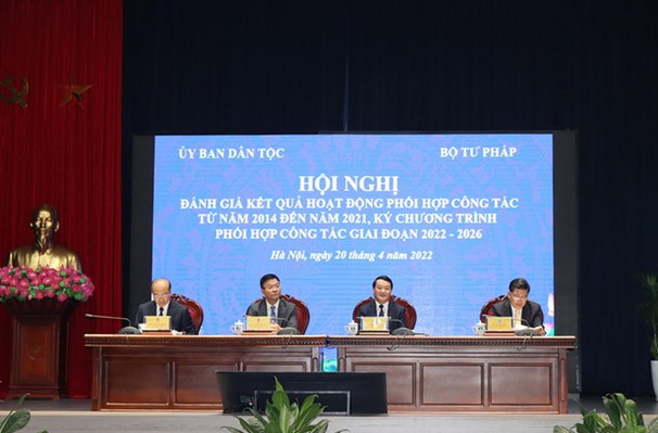 Trình bày dự thảo Báo cáo tổng kết Chương trình phối hợp công tác giữa Ủy ban Dân tộc và Bộ Tư pháp giai đoạn 2014-2020, Phó Vụ trưởng Vụ Pháp chế, Ủy ban Dân tộc Phan Hồng Thuỷ cho biết: sau 7 năm thực hiện Chương trình, công tác phối hợp giữa Uỷ ban Dân tộc và Bộ Tư pháp đã được tiến hành thường xuyên, chặt chẽ, thực chất, có trọng tâm, trọng điểm, đạt được nhiều kết quả đáng ghi nhận.