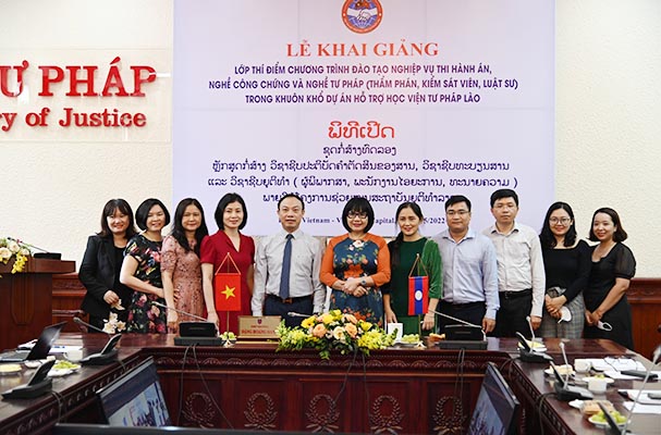 Ngày 9/5, Học viện Tư pháp – Bộ Tư pháp Việt Nam và Học viện Tư pháp – Lào tổ chức Lễ Khai giảng trực tuyến Lớp Thí điểm đào tạo nghiệp vụ thi hành án, nghề công chứng, nghề tư pháp (thẩm phán, kiểm sát viên, luật sư) trong khuôn khổ Dự án hỗ trợ Học viện Tư pháp Lào. Thứ trưởng Bộ Tư pháp Việt Nam Đặng Hoàng Oanh và Thứ trưởng Bộ Tư pháp Lào Ketsana Phommachane đồng chủ trì Buổi lễ. Tham dự buổi lễ còn có đại diện Ban quản lý Dự án hai Bên và các đơn vị có liên quan của hai Bộ.