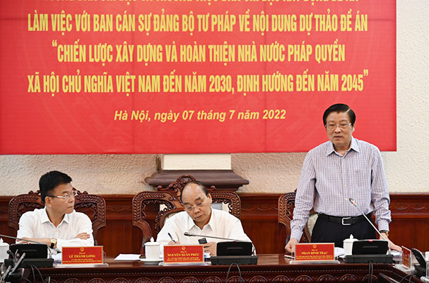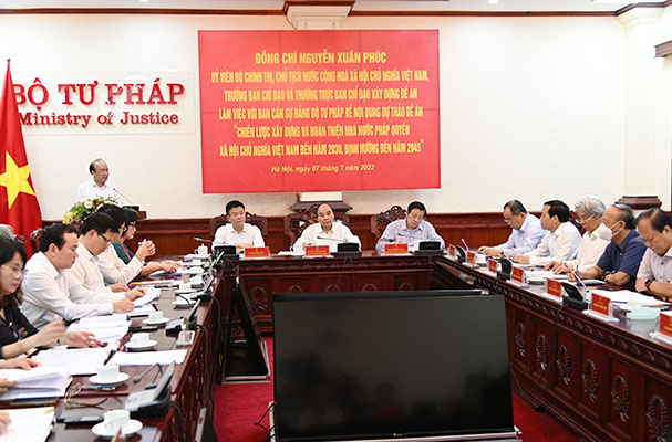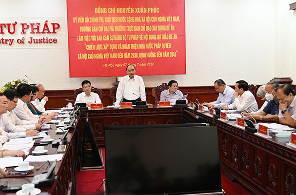 Chiều 7/7, Ủy viên Bộ Chính trị, Chủ tịch nước Nguyễn Xuân Phúc, Trưởng Ban Chỉ đạo Đề án “Chiến lược xây dựng và hoàn thiện Nhà nước pháp quyền xã hội chủ nghĩa Việt Nam đến năm 2030, định hướng đến năm 2045” đã nhấn mạnh như trên khi chủ trì buổi làm việc của Thường trực Ban Chỉ đạo xây dựng Đề án với Ban Cán sự Đảng Bộ Tư pháp về nội dung dự thảo Đề án liên quan đến tổ chức và hoạt động của Bộ Tư pháp.