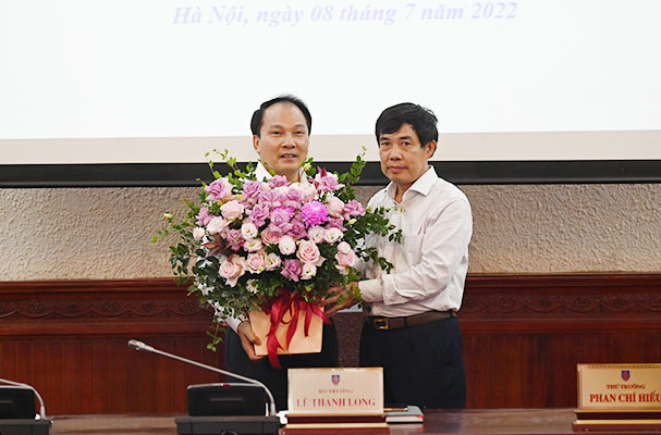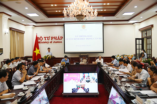 Trong buổi họp giao ban Lãnh đạo cấp Vụ ngày 08/7/2022, thay mặt Ban Cán sự đảng, Lãnh đạo Bộ Tư pháp, Bộ trưởng Lê Thành Long đã trao Quyết định điều động đối với đồng chí Nguyễn Công Khanh, nguyên Cục trưởng Cục Hộ tịch, quốc tịch, chứng thực đến công tác và giảng dạy tại trường Đại học Luật Hà Nội.
