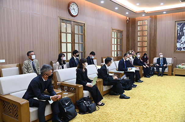 Cảm ơn Bộ trưởng Lê Thành Long đã dành thời gian đón tiếp Đoàn công tác, Giáo sư cũng chia sẻ niềm vui sau thời gian dài do ảnh hưởng của đại dịch Covid19, nay đã được trở lại thăm và làm việc tại Việt Nam. Giáo sư cùng Bộ trưởng đã thảo luận thêm các thông tin về tiến độ triển khai dự án Jica cũng như các ý tưởng, mục đích, nội dung của Dự án trong thời gian tới.