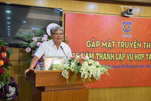 Chiều 5/8, Vụ Hợp tác quốc tế đã tổ chức buổi gặp mặt truyền thống nhân kỷ niệm 35 năm Ngày thành lập. Nguyên Bộ trưởng Bộ Tư pháp Hà Hùng Cường, Thứ trưởng Bộ Tư pháp Nguyễn Khánh Ngọc và Thứ trưởng Đặng Hoàng Oanh, đại diện một số Bộ, ngành, đại diện một số đơn vị thuộc Bộ Tư pháp cùng nhiều thế hệ lãnh đạo, cán bộ của Vụ Hợp tác quốc tế qua các thời kỳ đã tới tham dự.