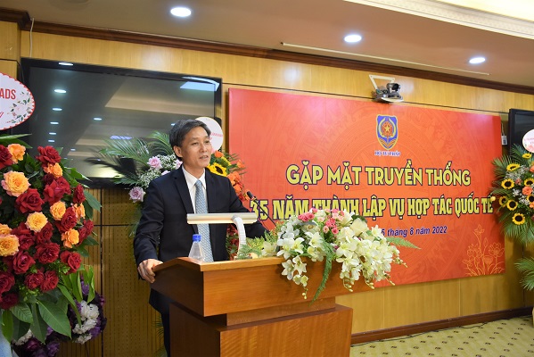 Phát biểu tại buổi gặp mặt, Thứ trưởng Nguyễn Khánh Ngọc nhấn mạnh sự ra đời và trưởng thành của Vụ Hợp tác quốc tế gắn với quá trình Đảng, nhà nước đẩy mạnh hội nhập quốc tế sâu rộng, đẩy mạnh cải cách tư pháp, pháp luật đồng thời cũng là giai đoạn Bộ, ngành Tư pháp có những bước phát triển vượt bậc về chức năng, nhiệm vụ, cơ cấu tổ chức. Nhìn lại chặng đường 35 năm với nỗ lực phấn đấu không mệt mỏi, vượt qua nhiều khó khăn thách thức của Vụ, cùng sự quan tâm, chỉ đạo kịp thời của Đảng ủy, Lãnh đạo Bộ, Thứ trưởng khẳng định công tác hợp tác quốc tế đã có sự phát triển vượt bậc, đóng góp vào thành tích chung cùa Bộ, ngành, đặc biệt trong công tác xây dựng, hoàn thiện, thi hành pháp luật và đào tạo cán bộ tư pháp, pháp luật.