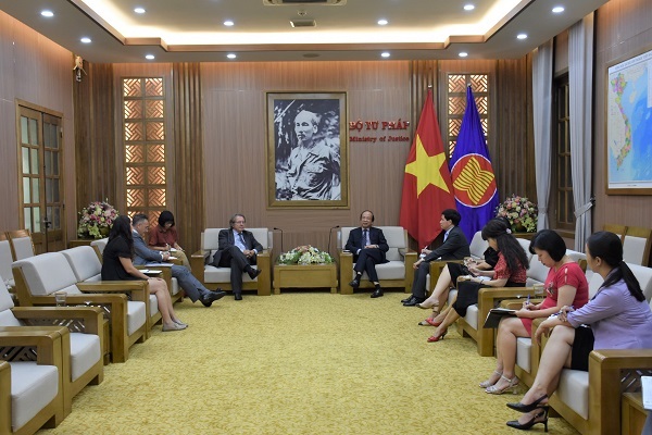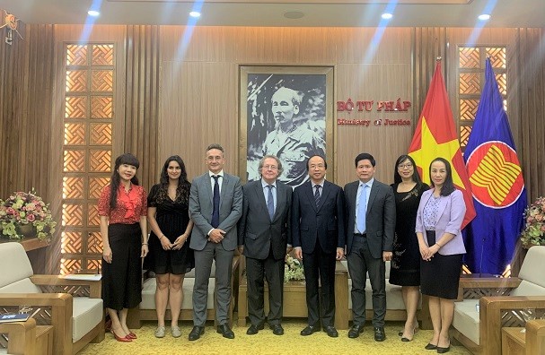 Chiều 19/9, Thứ trưởng Bộ Tư pháp Phan Chí Hiếu tiếp xã giao Giáo sư Michel Grimaldi, chuyên gia phụ trách Quỹ Luật lục địa của Pháp để trao đổi một số vấn đề hai bên cùng quan tâm.