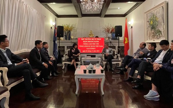 Tiếp tục chương trình công tác tại Australia, trong các ngày 03 và 04 tháng 11 năm 2022, Đoàn công tác của Bộ Tư pháp do Thứ trưởng Đặng Hoàng Oanh làm Trưởng đoàn thăm và làm việc với Bộ tổng chưởng lý Australia, Trường Đại học tổng hợp New South Wales và các cơ quan đại diện Việt Nam tại Canberra, Sydney.
