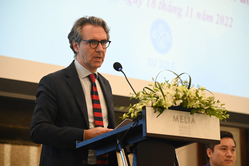 Trưởng Phái đoàn Liên minh Châu Âu tại Việt Nam Giorgio Aliberti phát biểu tại Phiên thảo luận