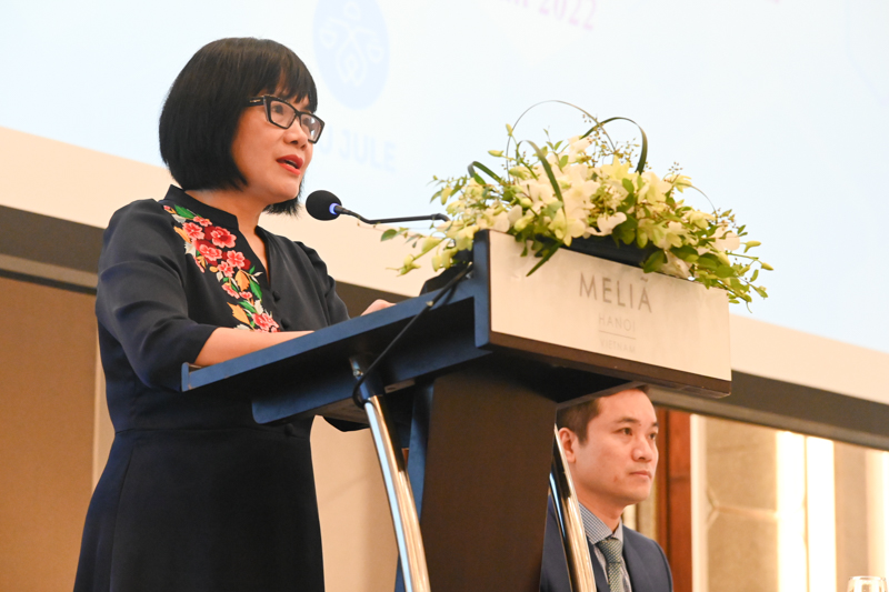 Thứ trưởng Bộ Tư pháp Đặng Hoàng Oanh cho ý kiến đóng góp sau khi nghe một số tham luận chuyên đề.