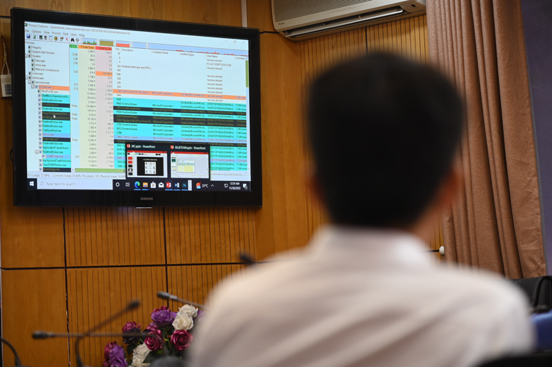 Đường mạng LAN và các màn hình trình chiếu nội dung diễn tập được lắp đặt phục vụ buổi diễn tập ứng cứu sự cố an ninh mạng.