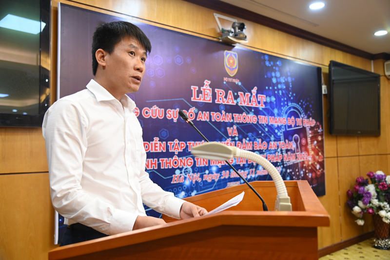 Trưởng phòng Hạ tầng kỹ thuật và an toàn thông tin, Đội phó Đội ứng cứu sự cố Nguyễn Đức Dũng công bố Quyết định thành lập Đội ứng cứu sự cố an toàn thông tin mạng Bộ Tư pháp.