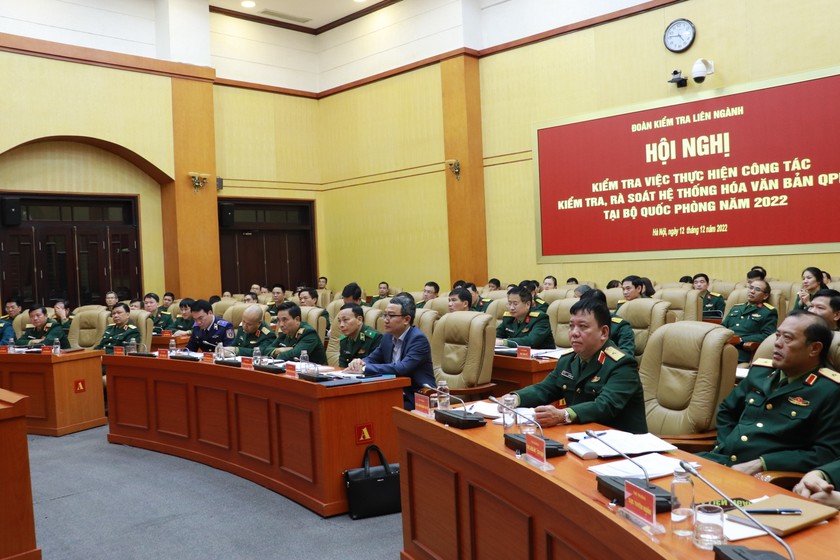 Bên cạnh đó, đồng chí Thứ trưởng Bộ Quốc phòng đề nghị Vụ Pháp chế chủ trì tổ chức các lớp tập huấn, bồi dưỡng kiến thức, kỹ năng xây dựng VBQPPL; kỹ năng về công tác kiểm tra, rà soát, hệ thống hoá VBQPPL cho các cơ quan, đơn vị. Tiếp tục triển khai thường xuyên công tác kiểm tra, rà soát hệ thống VBQPPL về quân sự, quốc phòng, kịp thời phát hiện những mâu thuẫn, chồng chéo hoặc quy định trái pháp luật để đề xuất xử lý hoặc ban hành văn bản thay thế góp phần hoàn thiện hệ thống pháp luật về quân sự, quốc phòng.