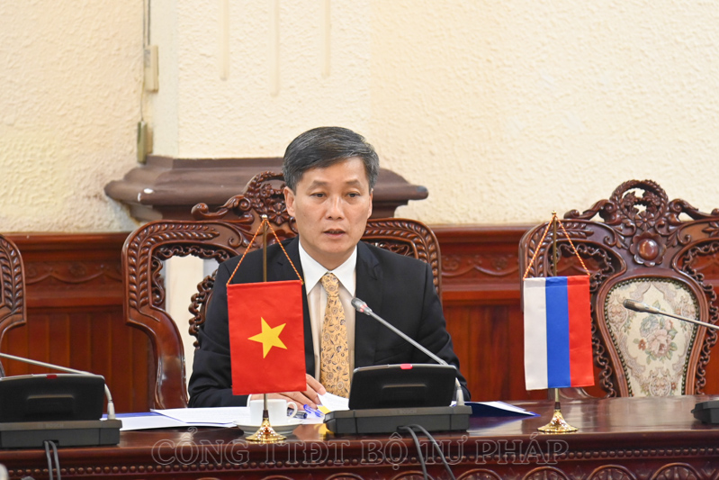 Thứ trưởng cũng nhấn mạnh, Nga là quốc gia có bề dày truyền thống về công tác pháp luật và tư pháp mà Việt Nam đã và đang học hỏi, nhất là lĩnh vực đào tạo nghề bổ trợ tư pháp, thi hành án dân sự, ứng dụng công nghệ thông tin trong xây dựng và thi hành pháp luật… Thông tin thêm về tình hình tương trợ tư pháp, Thứ trưởng cho biết hai nước đã phối hợp chặt chẽ để thực hiện tốt các yêu cầu hợp tác, tỷ lệ các nước thực hiện yêu cầu tương trợ tư pháp, hỗ trợ cho nhau đạt gần 80%; đồng thời đánh giá cao việc hai Bên đã bước đầu ứng dụng công nghệ thông tin trong việc thực hiện các yêu cầu tương trợ tư pháp giữa hai nước, tiết kiệm kinh phí và đẩy nhanh thời gian xử lý các yêu cầu uỷ thác tư pháp.