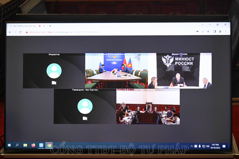 Nhân dịp này Thứ trưởng Bộ Tư pháp Nga Loginov Andrey Viktorovich cũng gửi lời mời Bộ Tư pháp Việt Nam tham dự Diễn đàn pháp lý quốc tế Saint Petersburg tổ chức vào tháng 6 năm 2024.