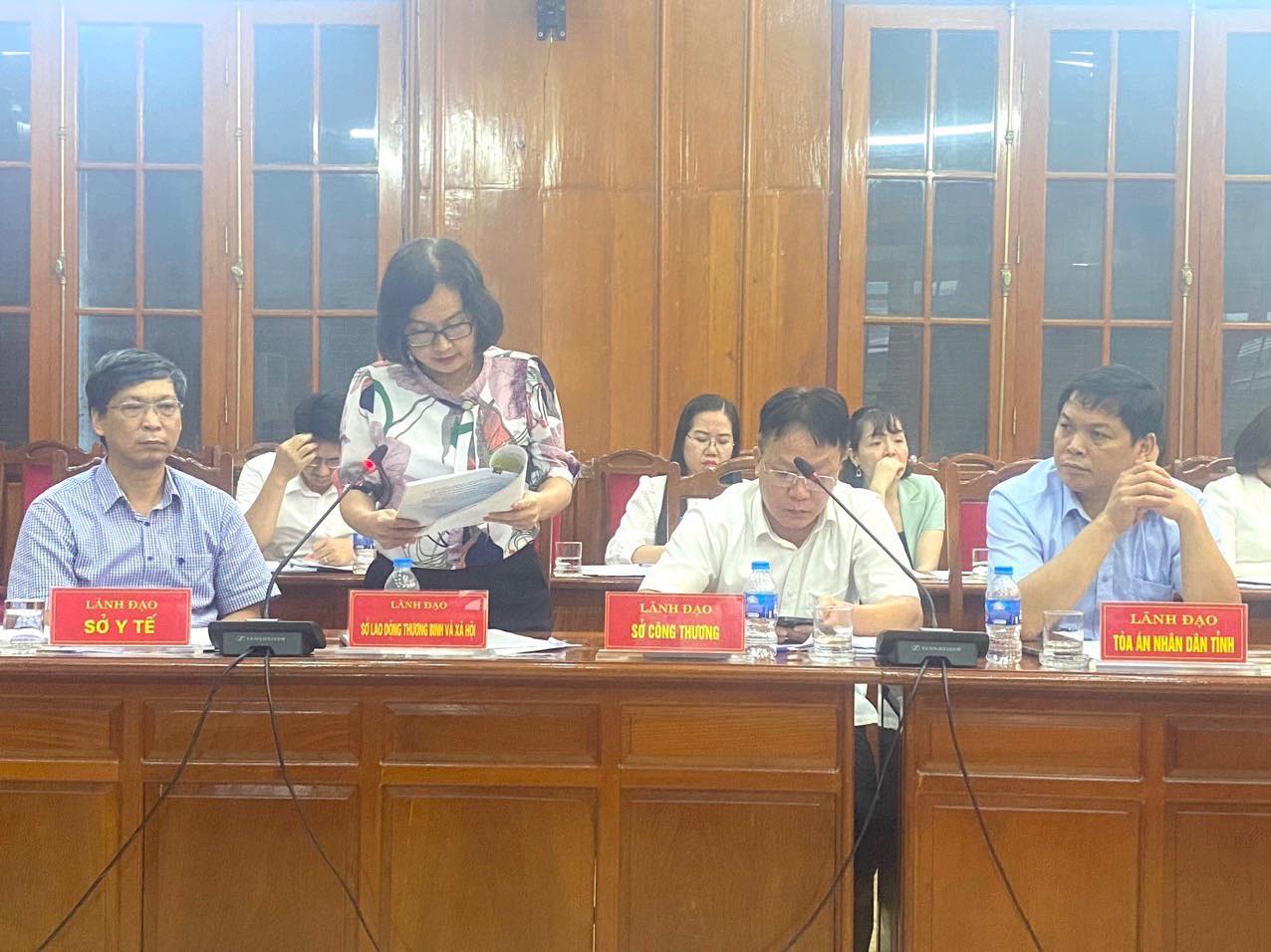 Đại diện Sở LĐTBXH tỉnh Yên Bái báo cáo thông tin về tình hình thi hành pháp luật trong lĩnh vực lao động, việc làm.
