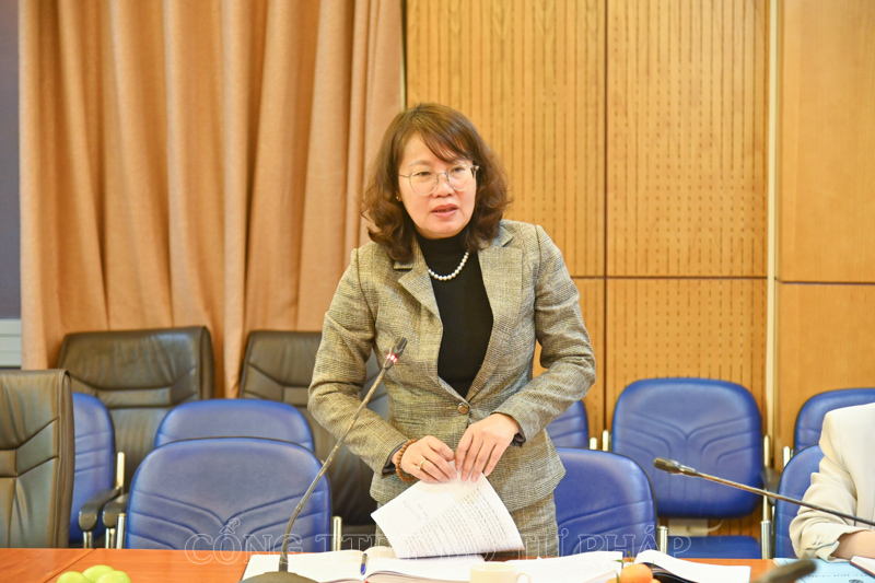 Đồng chí Đào Thùy Linh, Phó Tổng biên tập Tạp chí Dân chủ và Pháp luật báo cáo tóm tắt kết quả công tác năm 2023.