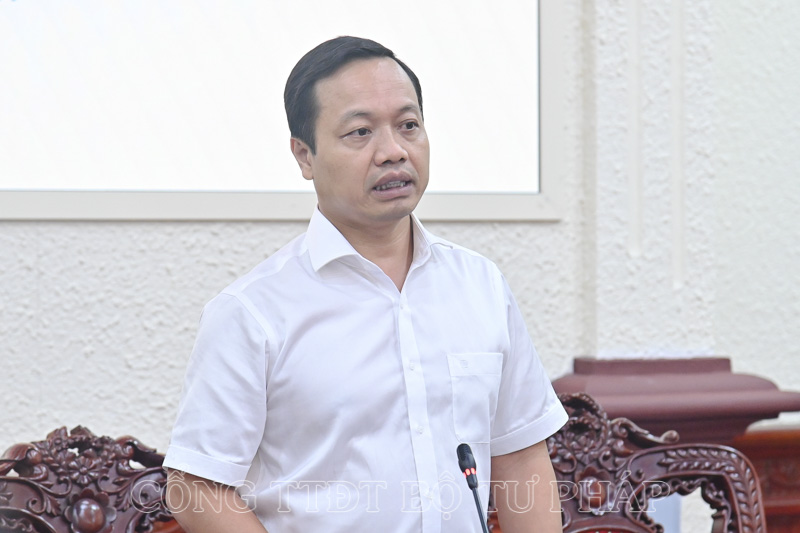 Cục trưởng Cục Kiểm tra VBQPPL Hồ Quang Huy báo cáo tại cuộc họp.