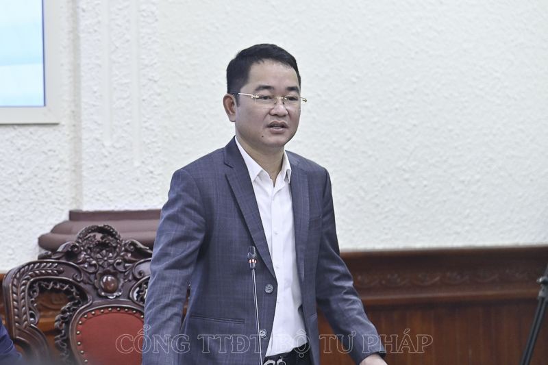 TS. Nguyễn Thanh Tú, Vụ trưởng Vụ Pháp luật Dân sự - Kinh tế (phải) và đồng chí Bạch Quốc An, Vụ trưởng Vụ Pháp luật Quốc tế, Bộ Tư pháp (trái).