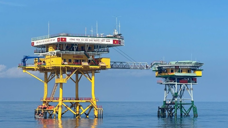 Nhà giàn DK1 và đảo Đá Thị vững chãi trước biển khơi.