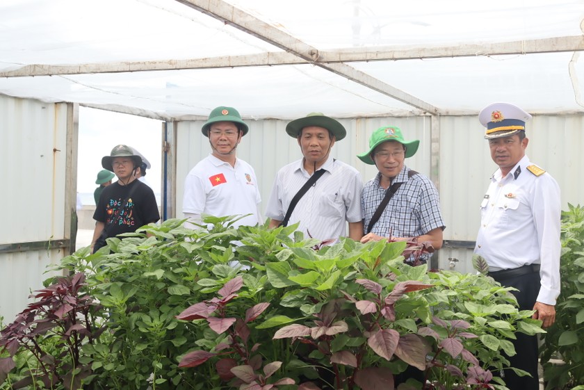 Đoàn công tác thăm vườn rau của các chiến sĩ.