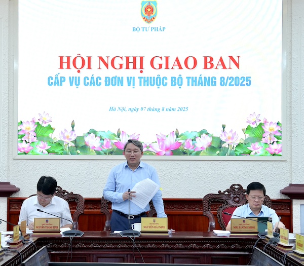 Phát biểu tại Hội nghị, Bộ trưởng Nguyễn Hải Ninh cơ bản đồng tình với các nhiệm vụ trọng tâm công tác tháng 8/2025 theo báo cáo của Văn phòng Bộ. Theo đó, Bộ trưởng nêu rõ, để đảm bảo sự vận hành thông suốt, hiệu quả của toàn ngành Tư pháp nói riêng và mô hình chính quyền địa phương 2 cấp nói chung, các đơn vị chuyên môn thành lập tổ công tác hỗ trợ các địa phương giải quyết các vướng mắc trong quá trình triển khai nhiệm vụ.