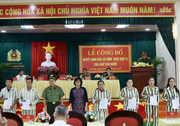 Phát biểu tại buổi Lễ, Thứ trưởng Đặng Hoàng Oanh cho biết, năm 2025, với nhiều sự kiện chính trị quan trọng của đất nước như kỷ niệm 50 năm Ngày Giải phóng miền Nam, thống nhất đất nước (30/4/2025) và 80 năm Quốc khánh nước Cộng hòa xã hội chủ nghĩa Việt Nam (02/9/2025), Chủ tịch nước đã 2 lần ký Quyết định về đặc xá. Ngay sau khi có Quyết định về đặc xá của Chủ tịch nước, Hội đồng Tư vấn đặc xá, các Bộ, ban, ngành và địa phương đã nhanh chóng triển khai thực hiện Quyết định của Chủ tịch nước.