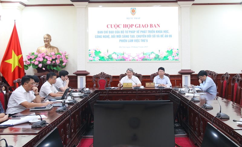 Ngày 19/9, Bộ trưởng Bộ Tư pháp Nguyễn Hải Ninh, Trưởng Ban Chỉ đạo đã chủ trì cuộc họp giao ban Ban Chỉ đạo của Bộ Tư pháp về phát triển khoa học, công nghệ, đổi mới sáng tạo, chuyển đổi số và Đề án 06. Thứ trưởng Nguyễn Thanh Tịnh, Phó Trưởng Ban thường trực Ban Chỉ đạo cùng dự.