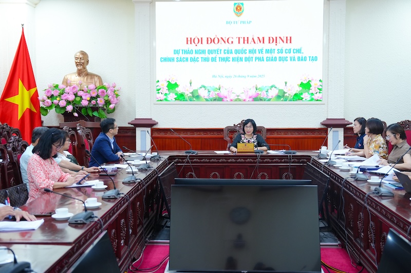 Ngày 26/9, Thứ trưởng Đặng Hoàng Oanh đã chủ trì Hội đồng thẩm định dự thảo Nghị quyết của Quốc hội về một số cơ chế, chính sách đặc thù để thực hiện đột phá giáo dục và đào tạo (GD&ĐT).