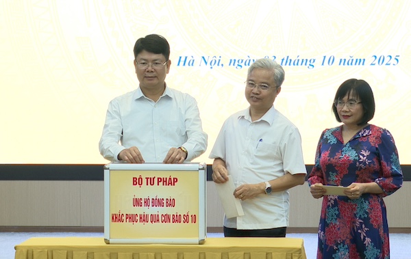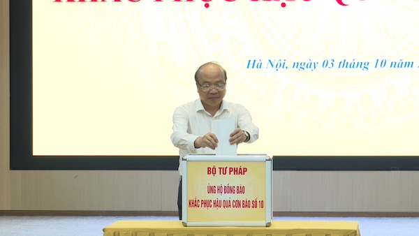 Chiều 3/10, Bộ Tư pháp tổ chức phát động ủng hộ đồng bào khắc phục hậu quả cơn bão số 10. Dự Lễ phát động có các đồng chí: Thứ trưởng Nguyễn Thanh Tịnh, Phó Bí thư Thường trực Đảng ủy Bộ Tư pháp; Phó Bí thư chuyên trách Đảng ủy Bộ Nguyễn Quang Thái; Thứ trưởng Phan Chí Hiếu; Thứ trưởng Đặng Hoàng Oanh; lãnh đạo các đơn vị, đoàn thể thuộc Bộ.