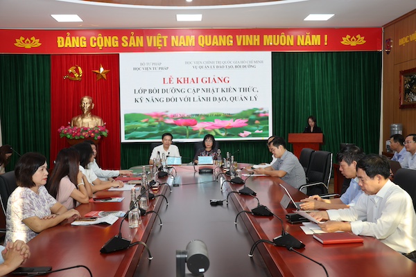 Tham gia các Lớp bồi dưỡng cập nhật kiến thức, kỹ năng đối với cán bộ lãnh đạo, quản lý theo Quy định số 145-QĐ/TW ngày 10/5/2024 của Bộ Chính trị về chế độ bồi dưỡng, cập nhật kiến thức, kỹ năng đối với cán bộ lãnh đạo, quản lý các cấp có hơn 900 công chức, viên chức cấp Vụ, cấp Phòng của các đơn vị thuộc Bộ Tư pháp.