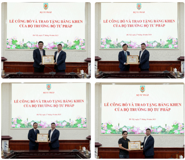 Bộ Tư pháp vừa tổ chức Lễ công bố và trao tặng Bằng khen của Bộ trưởng Bộ Tư pháp cho các phóng viên chuyên trách theo dõi hoạt động của Bộ, ngành Tư pháp và các tập thể, cá nhân có đóng góp trong quá trình xây dựng Cổng Pháp luật quốc gia.