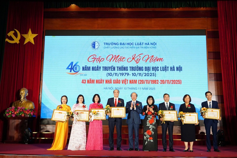 Ngày 10/11, Trường Đại học Luật Hà Nội đã tổ chức buổi Lễ Gặp mặt kỷ niệm 46 năm Ngày truyền thống Trường Đại học Luật Hà Nội (10/11/1979 - 10/11/2025) và 43 năm Ngày Nhà giáo Việt Nam (20/11/1982 - 20/11/2025).