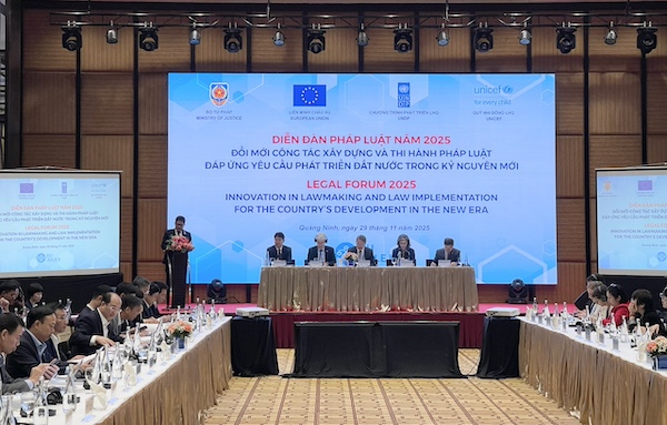 Ngày 29/11, trong khuôn khổ dự án Tăng cường pháp luật và tư pháp tại Việt Nam do EU tài trợ giai đoạn 2 (EU JULE 2), Bộ Tư pháp Việt Nam phối hợp với Phái đoàn Liên minh châu Âu (EU) tại Việt Nam, UNDP, UNICEF và UBND tỉnh Quảng Ninh tổ chức Diễn đàn Pháp luật năm 2025 với chủ đề “Đổi mới công tác xây dựng và thi hành pháp luật đáp ứng nhu cầu phát triển đất nước trong kỷ nguyên mới”. Ủy viên Ban Chấp hành Trung ương Đảng, Bộ trưởng Bộ Tư pháp Nguyễn Hải Ninh chỉ đạo và chủ trì Diễn đàn.
