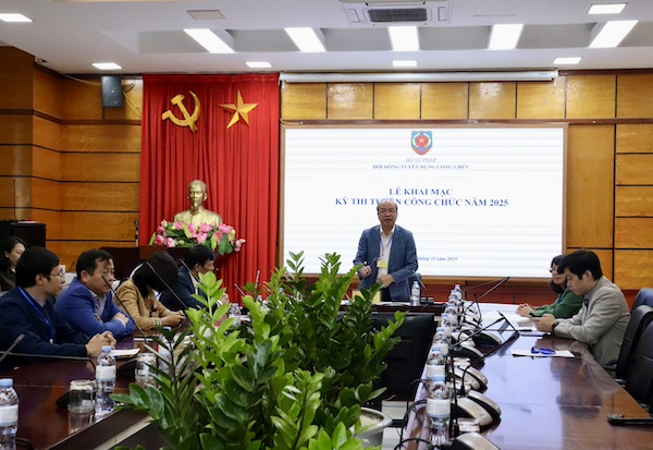 Phát biểu khai mạc kỳ thi, Thứ trưởng Phan Chí Hiếu, Chủ tịch Hội đồng tuyển dụng cho biết, việc chuẩn bị cho kỳ thi này đã được Bộ Tư pháp triển khai từ đầu năm, Hội đồng thi tuyển đã được thành lập, bao gồm các thành viên từ Bộ Tư pháp và các đơn vị liên quan. Hội đồng đã hoàn thành các công việc chuẩn bị theo đúng quy định. Các thí sinh dự thi đáp ứng đầy đủ các tiêu chuẩn và điều kiện theo quy định của pháp luật và yêu cầu công việc của Bộ Tư pháp. Kỳ thi sẽ bao gồm hai môn thi là kiến thức chung và nghiệp vụ. Việc chấm thi sẽ được thực hiện bằng máy tính, đảm bảo tính nhanh chóng, chính xác và khách quan.