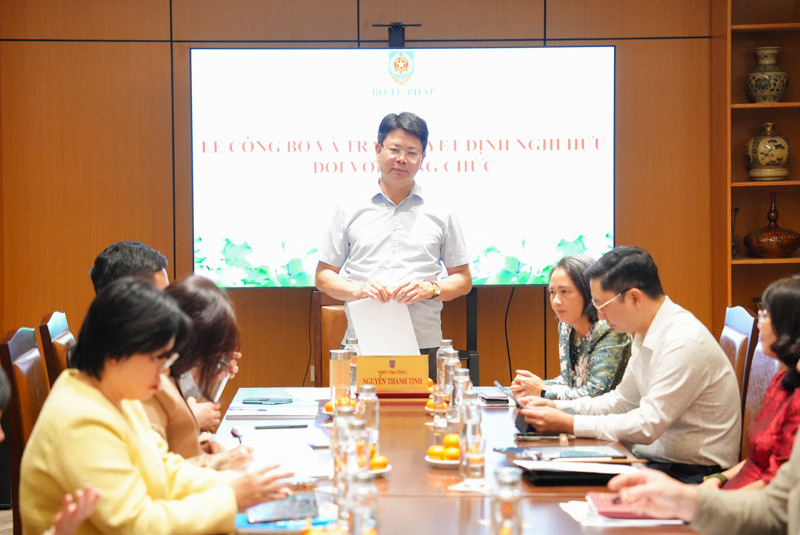 Ngày 22/12, Thứ trưởng Nguyễn Thanh Tịnh đã chủ trì buổi Lễ công bố và trao Quyết định nghỉ hưu đối với bà Nguyễn Minh Phương, nguyên Phó Vụ trưởng Vụ Hợp tác quốc tế, Bộ Tư pháp.