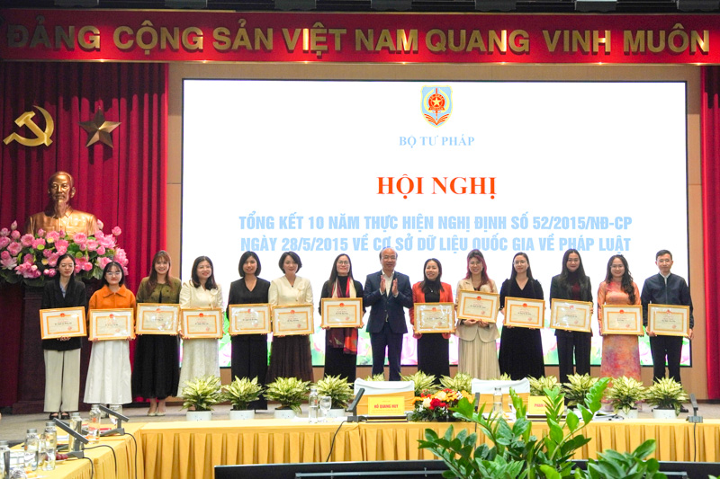 Nhân dịp này, Thứ trưởng Phan Chí Hiếu đã trao tặng Bằng khen của Bộ trưởng Bộ Tư pháp cho các tập thể, cá nhân có thành tích xuất sắc trong triển khai thi hành Nghị định số 52, trong đó có phóng viên Báo Pháp luật Việt Nam Vũ Phương Mai.