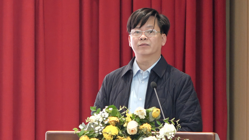Ông Nguyễn Duy Thắng, Phó Cục trưởng Cục Kiểm tra văn bản và quản lý xử lý vi phạm hành chính báo cáo tại Hội nghị.
