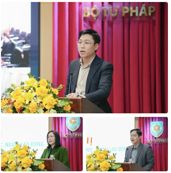 Hội nghị đã nghe Báo cáo kết quả công tác tư pháp năm 2025 và nhiệm vụ, giải pháp chủ yếu công tác năm 2026; báo cáo tình hình sử dụng ngân sách nhà nước trong các đơn vị thuộc Bộ Tư pháp năm 2025; Báo cáo kết quả thanh tra, kiểm tra, giải quyết khiếu nại, tố cáo đối với CBCCVC các đơn vị thuộc Bộ Tư pháp năm 2025; Báo cáo về kết quả thực hiện công tác tổ chức, cán bộ của Bộ Tư pháp năm 2025; Báo cáo kết quả hoạt động của Ban Thanh tra nhân dân cơ quan Bộ Tư pháp năm 2025 và đề xuất hoạt động thanh tra nhân dân năm 2026. Đại diện lãnh đạo một số đơn vị đã trả lời các kiến nghị của CBCCVC, NLĐ.