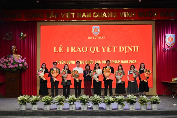 Ngày 15/1, Thứ trưởng Bộ Tư pháp Đặng Hoàng Oanh đã chủ trì buổi Lễ trao Quyết định tuyển dụng công chức của Bộ Tư pháp năm 2025.