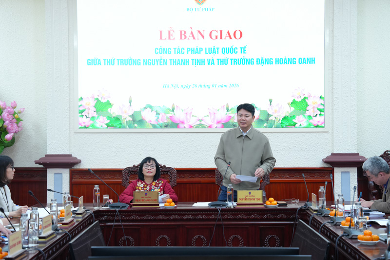 Ngày 26/1, Bộ Tư pháp đã tổ chức Lễ bàn giao công tác pháp luật quốc tế giữa Thứ trưởng Nguyễn Thanh Tịnh và Thứ trưởng Đặng Hoàng Oanh.